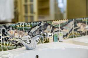 The large bathroom has 'his and hers' sinks and an enormous roll top bath, large enough to be shared if you like, and a separate walk in shower.